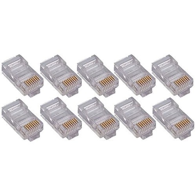 4XEM™ Cat6 Ethernet plug/connector providing high performance and durability is for use on solid or stranded conductor Cat6 cable, sold as 100 per pack.