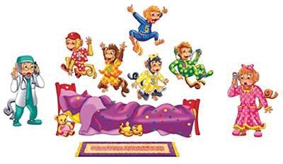 5 Monkeys Jumping on the Bed Bilingual Rhyme Pre-Cut Flannelboard Set, 9 Pieces