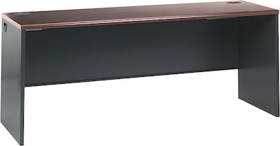 HON® 38000 Series 60" Desk shell in mahogany/charcoal finish measuring 29 1/2" x 60" x 30" has steel reinforced worksurface for strength.