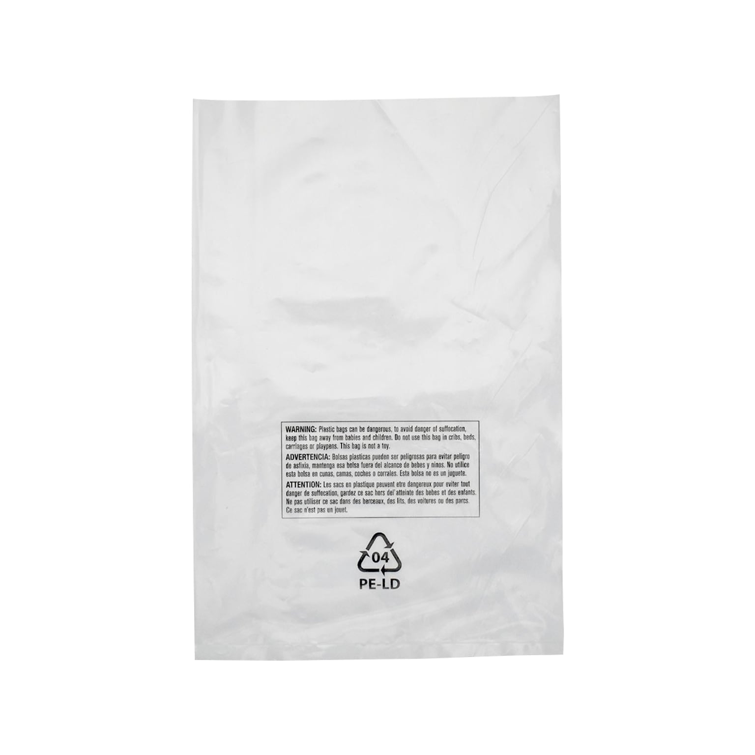 Perfect for retail and mail-order applications, this low-density polyethylene bag by Laddawn is preprinted with a standard three-language suffocation warning and recycle symbol to meet the standard shipping requirements of many online retailers.