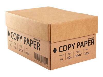 8.5" x 11" Copy Paper, 20 lbs., 92 Brightness, White, 5000 Sheets/Carton (324791/200230)