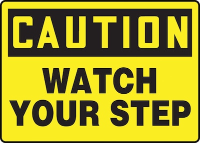 Accuform Signs® 10" x 14" Confined space sign has black "CAUTION Watch Your Step" text on a highly visible yellow background. Sign is moisture-resistant and has matte surface with permanent acrylic adhesive.