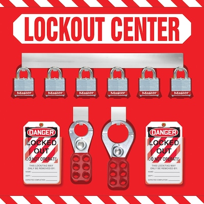 Accuform Lockout Store Board With Kit and 6 Padlock, Red/White (KST814)
