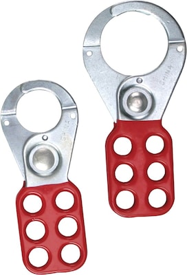 Accuform Signs® Stopout® Standard lockout scissor hasp with a 1" dia opening accommodates up to 6 pad locks. Hasp in red color allows multiple people to lockout the equipment for safety.