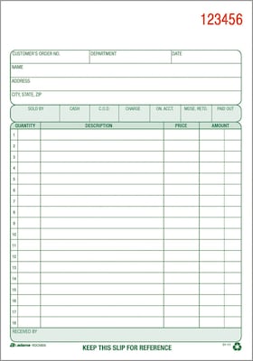 Adams recycled carbonless sales and order books are ideal for keeping proper records of orders and sales that you or your staff accept from clients at locations outside your office. Each page of each book is an organized form that gives you plenty of room to write down crucial information.