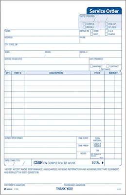 Adams® Carbonless service order form is designed to fit for any type of service organization. 3-Part form has ample of space at top for company stamp and is suitable for most types of service organizations.