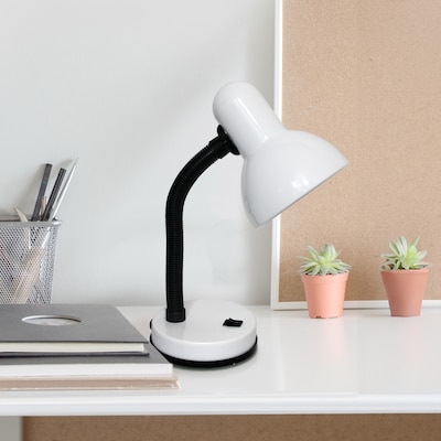 A nice, low-cost, and functional desk lamp to meet your basic lighting needs. This desk lamp features a painted plastic base and metal shade, flexible hose neck, and ON/OFF switch located on the base for your convenience. Perfect for office, kids room, or college dorm!