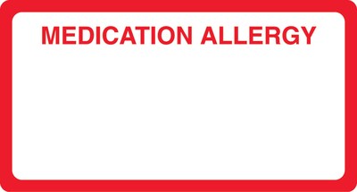 Brightly colored labels signal important patient information to your staff 500 White and Red "Medication Allergy" labels per package