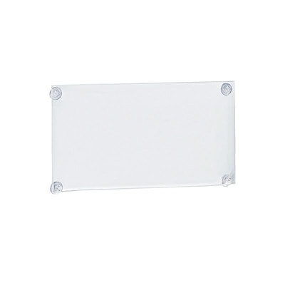 The Azar Displays Clear Acrylic Sign Holder equipped with four high quality suction cups can be conveniently mounted on any clean and non-porous surface.