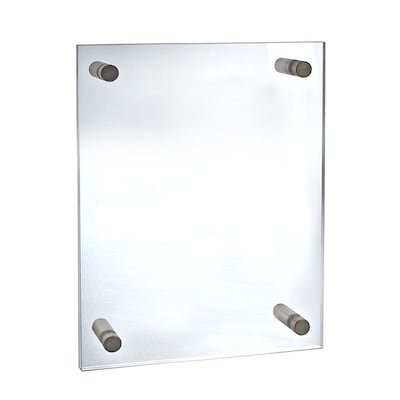 The Azar Displays 11" x 17" Standoff Acrylic Sign Holder With Caps displays graphics on walls and doors either horizontally or vertically.