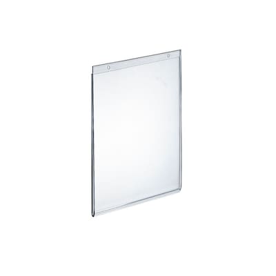 The Azar Displays Vertical Acrylic Wall Mounted Sign Holder measures 11" x 7" and features pre-cut holes for hanging signs conveniently on walls and doors of your store.