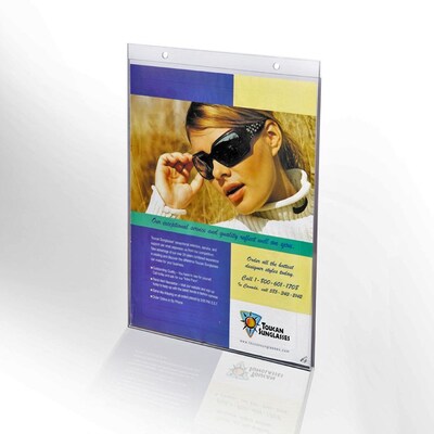 Display your exclusive offers on a product or menu item by hanging the Azar Displays Vertical Sign Holder on your restaurant's wall. It features pre-cut holes on two corners for easy and convenient wall mounting. For improved durability and ease of use, this wall mount sign holder is made of tough acrylic. It also features a side load design for easy insertion of any printed material, which you can change whenever you want. Measuring 12"H x 9"W, this acrylic sign holder allows clear dual-sided viewing of important information or special discounts, making it ideal for restaurants, stores or hotel receptions.