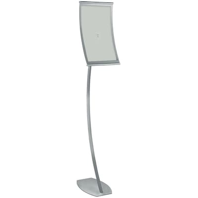 The Azar Displays Curved Metal 11" x 17" Floor Sign Holder features flip-open magnetic lens, making it apt for counter-top displays.