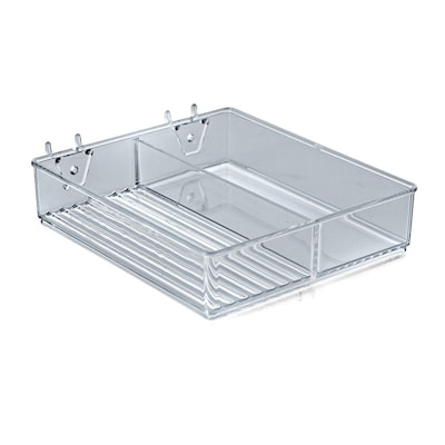 Azar® 2-compartment Tray for Pegboard/ Slatwall made from clear acrylic measures 1.5" x 6.5" x 7.5".