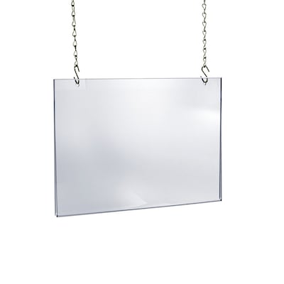 Make the most of your store space with the Azar Displays Hanging Poster Frame that enables your to display information or promotional offers by suspending them from the ceiling to maximize advertising opportunity. You can suspend the hanging poster frame to indicate different sections in your store for easy customer guidance. Made of acrylic this poster frame is extremely durable and sturdy. You can use this poster frame to advertise effectively in your store or cafe.