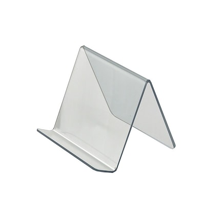 Azar® Acrylic Easel w/ 1.25" front lip is sold as 10/pack and measures 4.125" x 5" x 5".