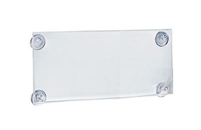 The Azar Displays 5.5" x 11.5", Acrylic Sign Holder with Suction Cups offers enhanced holding power and allows for double-sided graphic inserts.