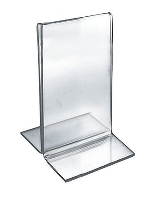 Display your exclusive offers on a product or menu item by placing the Azar Displays Vertical Double-Sided Acrylic Sign Holder on your restaurant's table tops. Its acrylic construction ensures high durability and light weight for ease of use. The double sided sign holder features a bottom load design for easy insertion so you can change the advertisement as per the season. Measuring 5"H x 3.5"W, this sign holder allows dual-sided viewing of important information or special discounts, making it ideal for restaurants, stores or hotel receptions.