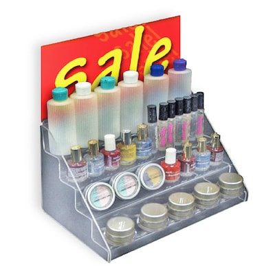 Azar® Counter step display measures 12" width that allows to present small products beautifully and has 4-tier display space.