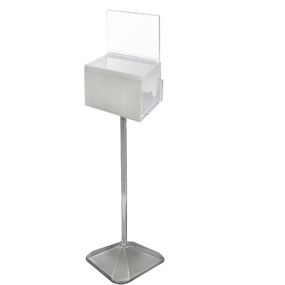 Azar® Acrylic suggestion box in extra large size with pedestal that features pocket and security lock with keys for variety of uses, it comes in white color.