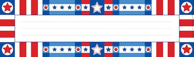 Barker Creek’s Americana Name Plates/Bulletin Board Signs are incredibly versatile! There are 36 name plates that measure 12" long x 3.5" wide. These patriotic nameplates are perfect for identifying each student’s desk. You can also use them for word walls, labeling folders, learning centers, flash cards….and much more. The uses are limited only by your imagination! Coordinating products available: Search Barker Creek Americana.