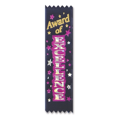 Beistle "Award Of Excellence" Value pack ribbon has beautifully foiled graphics and a string for hanging. Ribbon measuring 1 1/2" x 6 1/4" is made from high quality materials and is suitable for school day occasion, sold as 30 per pack.