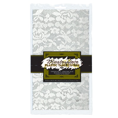 Beistle Rectangular lace table cover in white color is made of plastic and can be wiped down fast to keep serving areas clean. Table cover measures 54" x 108" and is a keynote speaker of your summer party display, sold as 4 per pack.