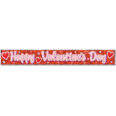 Beistle "Happy Valentine's Day" Fringe Banner is made of metallic material used for dances, parties. Banner measuring 8" x 5' is fringed, sold as 4 per pack.