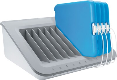 - Stores and charges up to 10 devices simultaneously