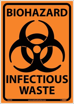 National Marker "Biohazard Infectious Waste" Safety sign measures 10" x 14" and is made adhesive vinyl material for added durability.