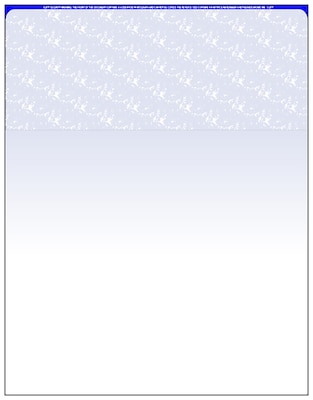 Zapco® Blue security check on top measures 8.5" x 11", has 60 lbs offset paper stock and is sold as 500 per pack.