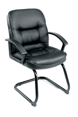 Boss Sled base black leatherplus guest chair has a classy look and is perfect for office application.
