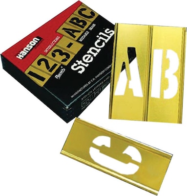 C.H. Hanson® Letter and number stencil set features 2" character and depicts A - Z text, 0 to 9 numbers. Stencil set is made of brass for durability and cleans up easily with paint solvent.