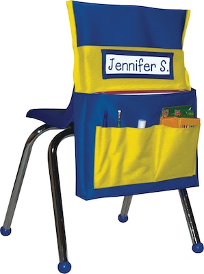 Carson-Dellosa Chairback Buddy Pocket chart for all grades contains 6 blue with yellow color pockets for easy storage that is perfect to use in every classroom. Chart has heavy-duty washable canvas with PVC coating for long lasting durability.