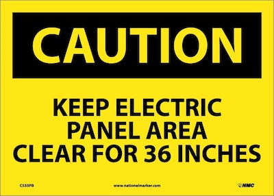 Caution Labels; Keep Electric Panel Area Clear For 36 Inches, 10X14, Adhesive Vinyl