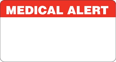Brightly colored labels signal important patient information to your staff 500 Red and White "Medical Alert" labels per package