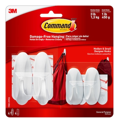 Command Assorted Hooks, 3 lb., White, 2-Small Command Hooks, 2-Medium Command Hooks, 2-Pairs (17081-2VPES)