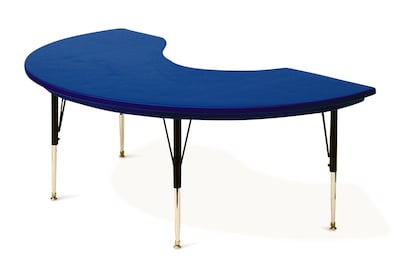 With a black steel frame, the Correll, Inc. blue blow-molded plastic top activity table not only appears tidy but also looks sturdy. The kidney-shaped, blow-molded plastic top is lightweight, waterproof and resists stains from juices, crayons, paint as well as permanent markers. This table measures 72" x 48" and features height adjustment from 21" - 31" in 1" increments, making it perfect for Kindergarten to adult use.