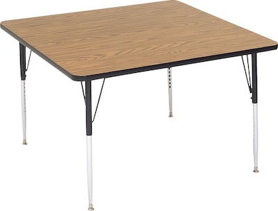 Extra-strong square activity table features high-pressure laminated top with backer sheet, plus standard leg adjustments from 21-30" in 1" increments. Correll Speedwrench included with table for fast set-up and height adjustment.