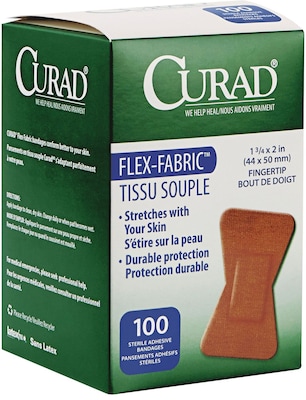 Curad® Flex-Fabric™ Adhesive Fingertip Bandages; Natural, 2"Lx1-1/2"W, 100 Bandages/Bx, 12 Bx/Case
