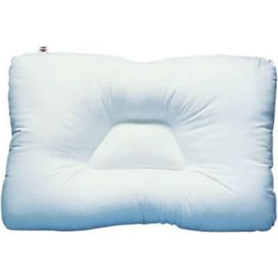 - The shaped center gently cradles the head while sleeping on your back