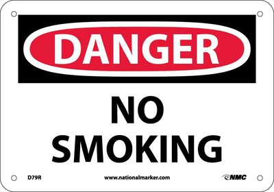 National Marker "Danger No Smoking" Safety sign measuring 7" x 10" is made of rigid plastic material for durability.