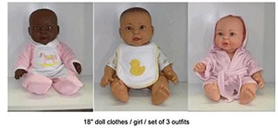 - Set of 3 girl outfits for 17.5 infant dolls