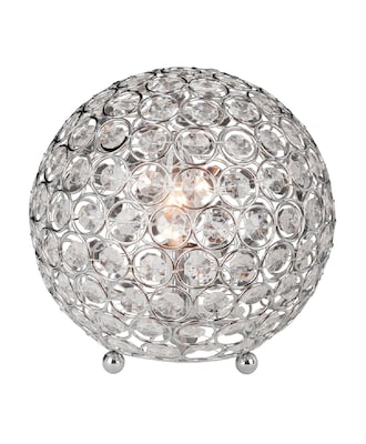 Elegant Designs Crystal ball table lamp glows from within to cast pretty shadows. 7.75" Table lamp that is threaded with sturdy steel rings has a chrome plated finish to render an elegant look.