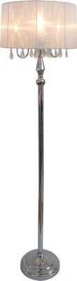 Elegant Designs Simple designs trendy floor lamp with flawless chrome finish adds decorative flair to your room decor. Floor lamp featuring sheer white shade of 17" diameter has attractive draping crystals making it a perfect addition to your home.