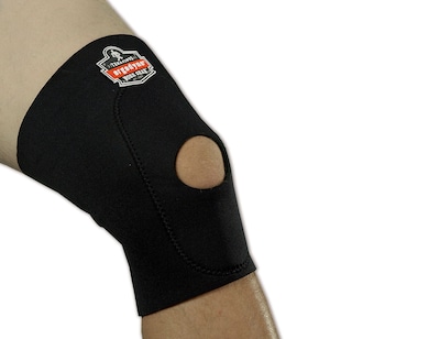 Ergodyne® ProFlex® Large black single-layer ambidextrous knee sleeve with open patella/anterior pad features contoured design that provides snug fit. Knee sleeve renders uniform support and flexibility with neoprene fabric.