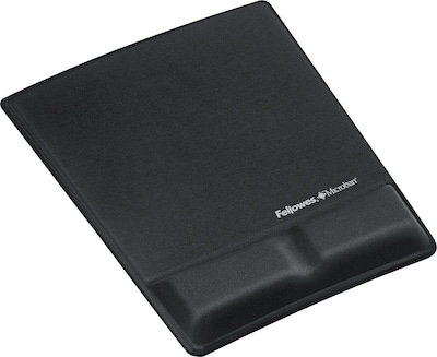 Improve your work station comfort with this Fellowes® ergonomic mouse pad with wrist rest support. The jersey fabric cover keeps the support soft to the touch with a breathable design to keep you comfortable and cool. Self-adjusting memory foam conforms to your wrists to provide customized support. Microban® antimicrobial protection helps keep your product cleaner. The black color 9181201 lets this wrist support blend in with your office furnishings, making it a seamless and functional addition to your desk.
