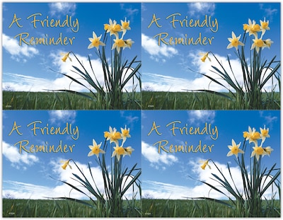 Attention-getting postcard captures your patients attention. The back of the postcard is blank so you can add a personalized message, using your own Laser Printer. Uncoated stock, perforated sheets. Four cards to an 8-1/2" x 11" sheet. 100 cards. Detached size: 4-1/4" x 5-1/2".