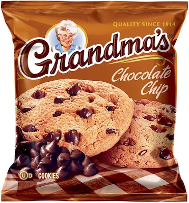 Grandma's® Homestyle chocolate chip cookies have a delicious taste, sold in 2.5 oz bag with 60 bags per box.