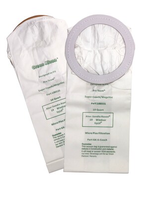 Green Klean® Superior Quality Replacement Vacuum Bags, Fits Pro Team - Super Coach - Mega Vac, Perfect Vac Model No. PB1001, Mosquito Super Vac Super HEPA BP, Windsor 68005 VP10, Raven 10QT, Oreck XL PRO 10A, Electrolux Aggressor II 10 qt backpacks (GK-S-Coach, 100331, 450243, PVR-1410, 900-0032, 900-0003, PKBP10QT, 10-0006, 15-1803, 68005, 8.619-885.0)